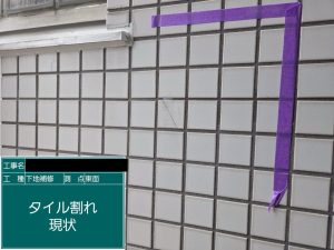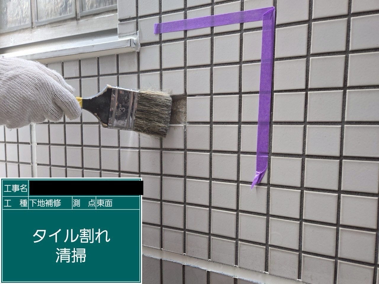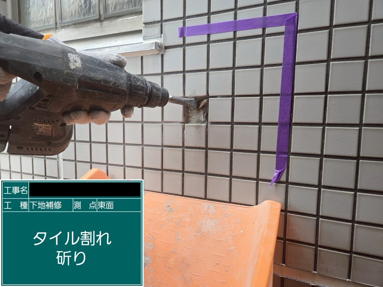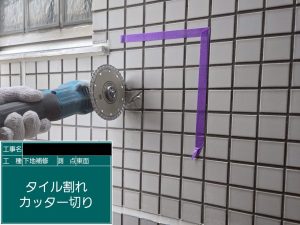 まずは割れたタイルの周りをカッターで切れ目をいれていきます。
