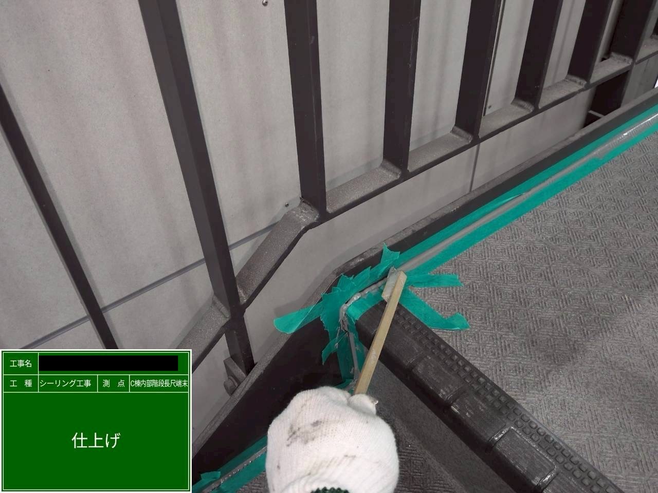充填したシール材を均一にヘラでならし、美しいラインを整えます。職人の技術が最も映える工程で、見た目と性能、どちらにもこだわります。