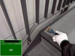 施工部位の汚れやほこりを丁寧に取り除き、密着性を高めるための下地を整えます。仕上がりの美しさと耐久性を左右する重要な工程です。