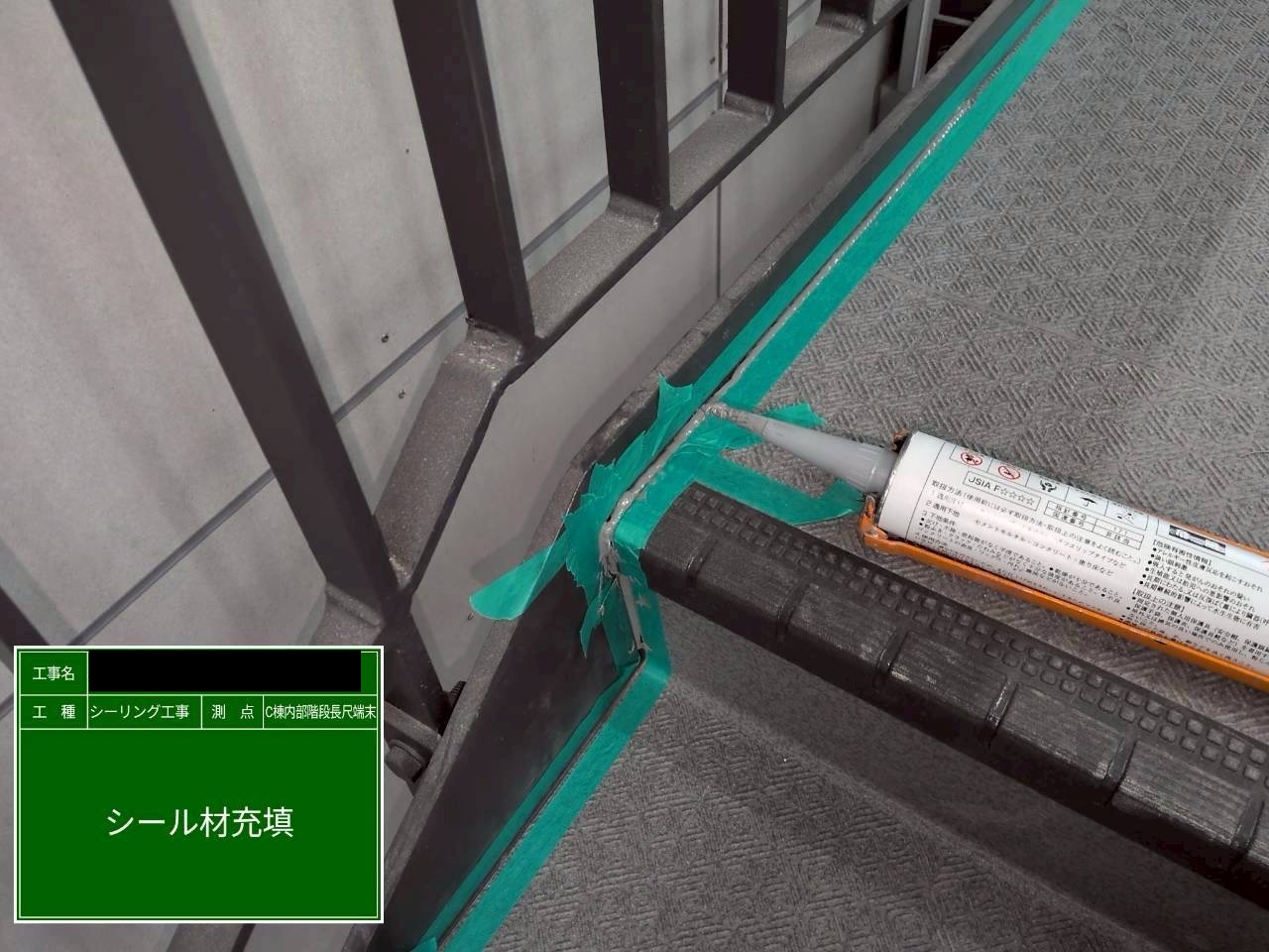 専用ガンを用いて均一にシール材を充填します。隙間をしっかりと埋めることで、雨水の浸入を防ぎ、建物を長く守ります。