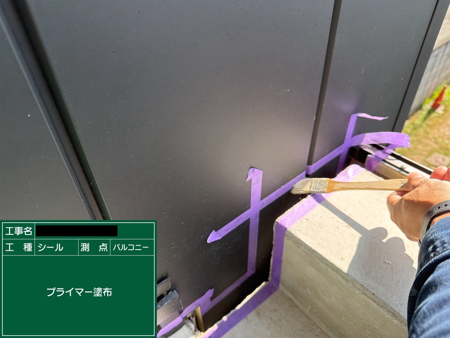 まずは清掃、次にプライマーでシールの密着を良くします。