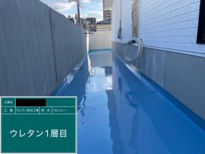 次にウレタン1層目2層目を流して規定量の膜厚にしていきます。