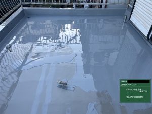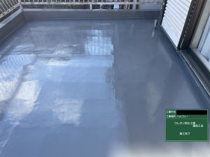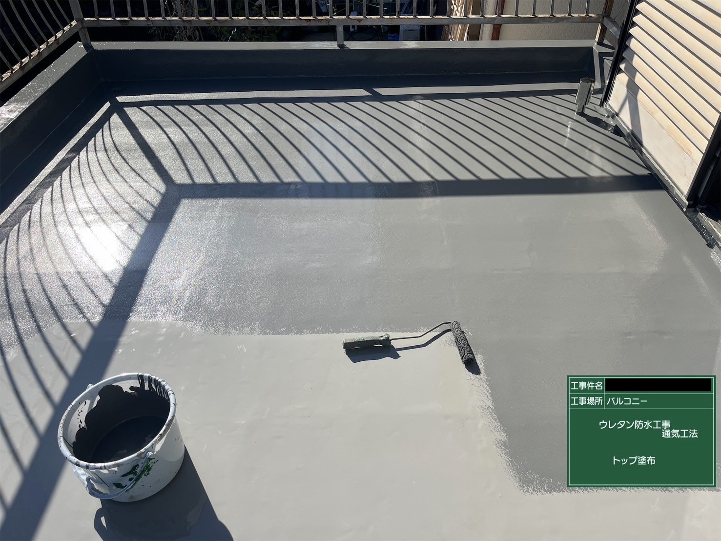 紫外線や汚れからウレタン防水層を守るため、保護用トップコートを仕上げに塗布します。